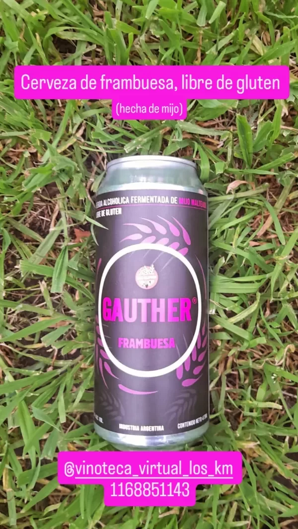 Cerveza sin TACC Gauther, elaborada con Mijo, sabor frambuesa. Tremenda cerveza artesanal