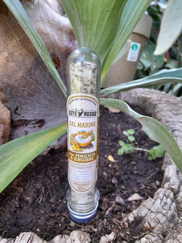 Mezcla de sal marina, Pimienta negra y jengibre en polvo.
