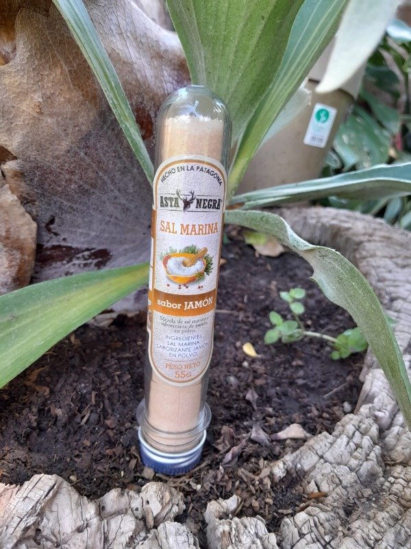 Mezcla de sal marina y saborizante de jamón en polvo.
